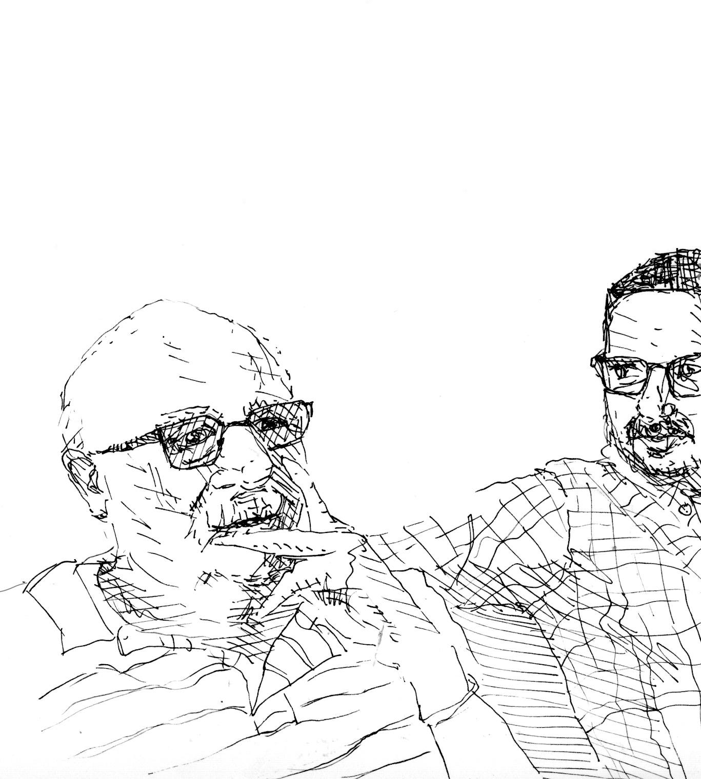We met him in one of the common areas where all the residents congregate, most of whom were in wheelchairs. A man sat on a stool on a mini stage singing Christmas carols from a feedback-filled karaoke machine. There were nursing aids in each corner of the room. They were mostly very young and never looked up from their phones. My father sat in the back on a cushioned chair and held on to the handlebars of his walker. He looked much older than when I last saw him a few months ago.