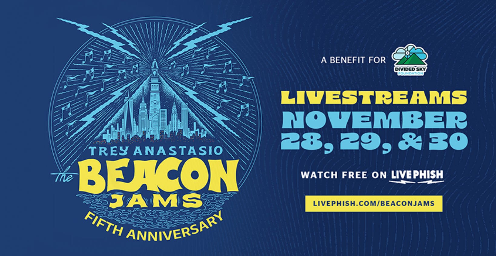 If you’re seeing this over Thanksgiving Weekend (Nov 28-30), you can sign up to watch Trey’s Beacon Jams livestream for FREE right here, and donate to support to Divided Sky.